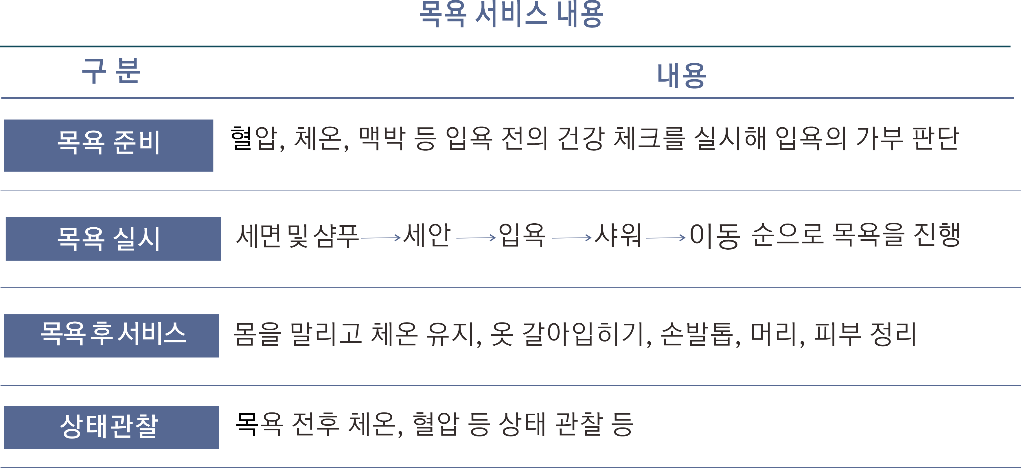 가정 내 욕실을 이용하여 목욕 서비스 제공