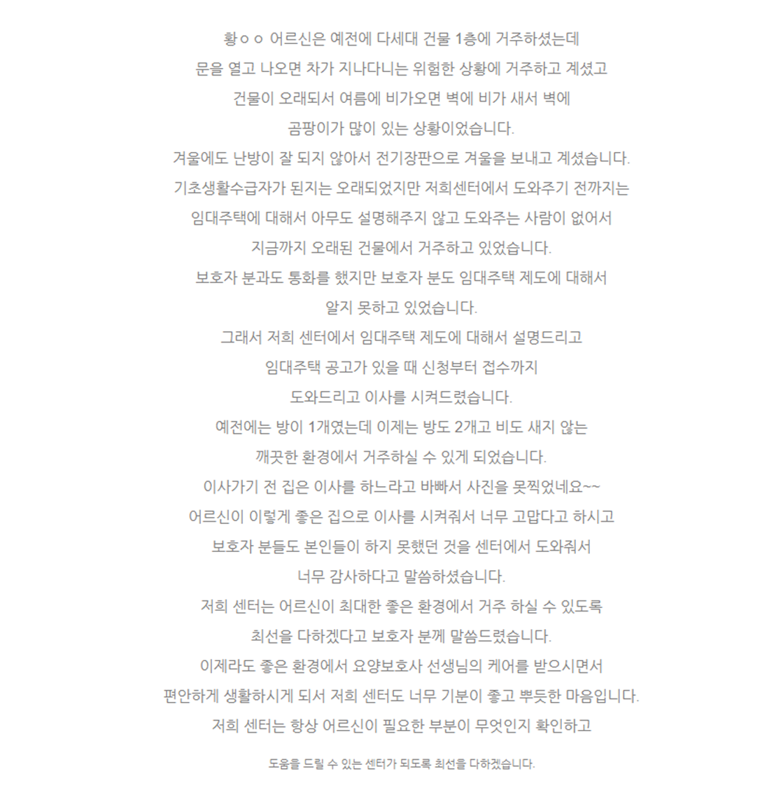 [주거복지] - 임대주택지원 - 황0순 어르신 임대주택 이사지원