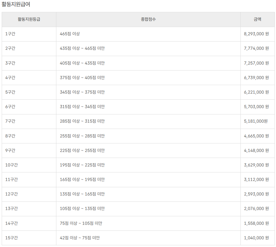 2026년 활동지원급여 등급별 지원 금액(장애인활동지원사업) 안내