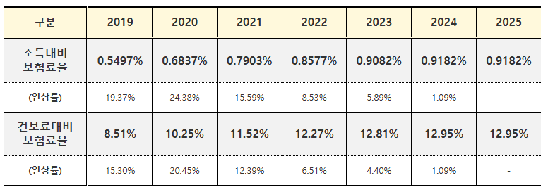 2024년과 동일하게 12.95%를 적용하게 된다.